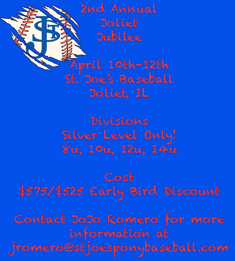Teams, We are excited to kick off 2026 with our 2nd annual Joliet Jubilee tournament!